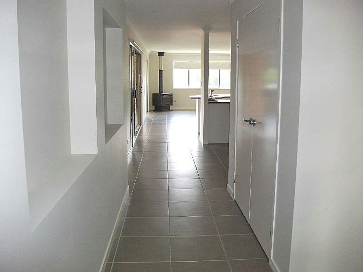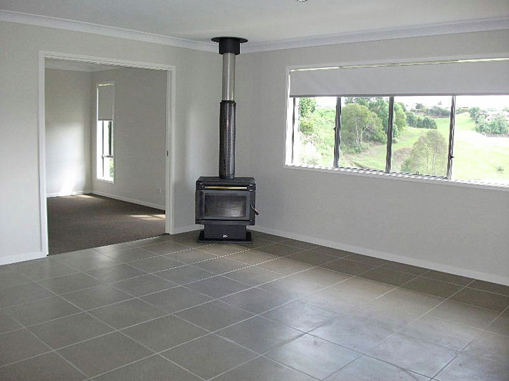 • Open plan fully tiled kitchen and family room with slow combustion heater.
