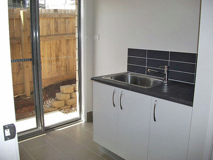 • Gently sloping rear lawn with rainwater tank.