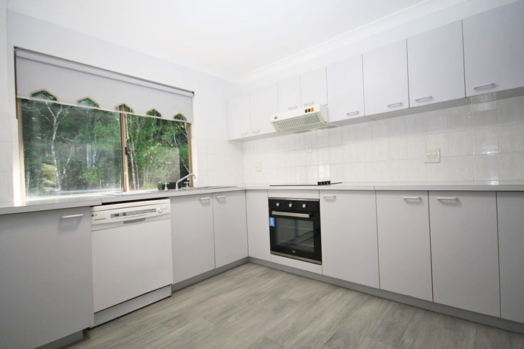 New, modern lino throughout the laundry and adjacent kitchen which offers a practical floorplan, with ample cupboard and storage and bench space that is also complemented by a brand new wall oven.