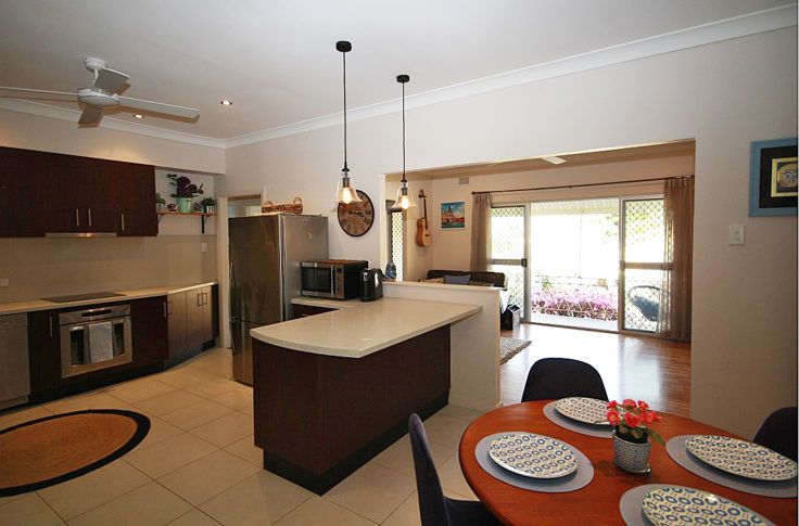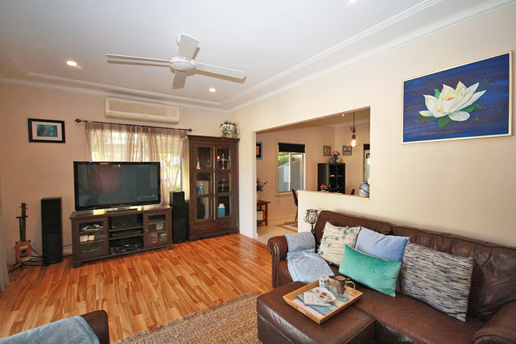 Stylish open plan living upon entry with glass sliders in the air-conditioned loungeroom allowing access to the front verandah area that creates a brilliant cross flow of fresh air.
