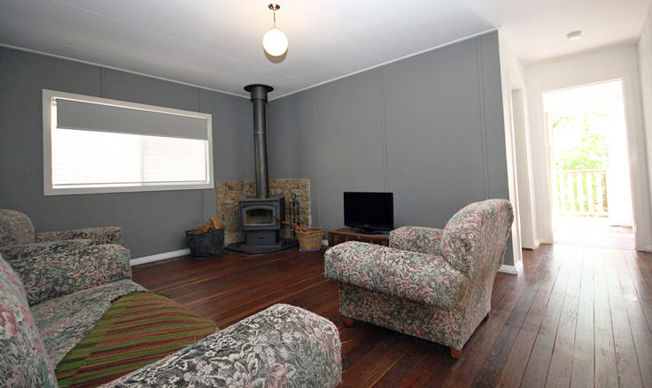 The centrally positioned loungeroom glows with natural sunlight and also offers a slow combustion wood heater encased with a rock backdrop which holds the warmth for winter evenings.