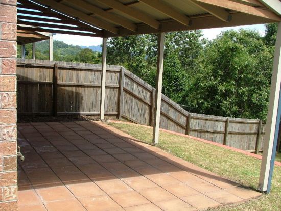 Private partly fenced courtyard with covered, paved entertaining area off tiled living area downstairs.